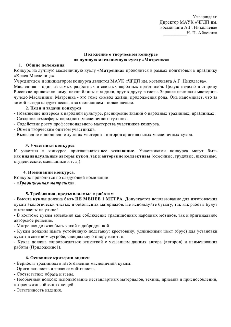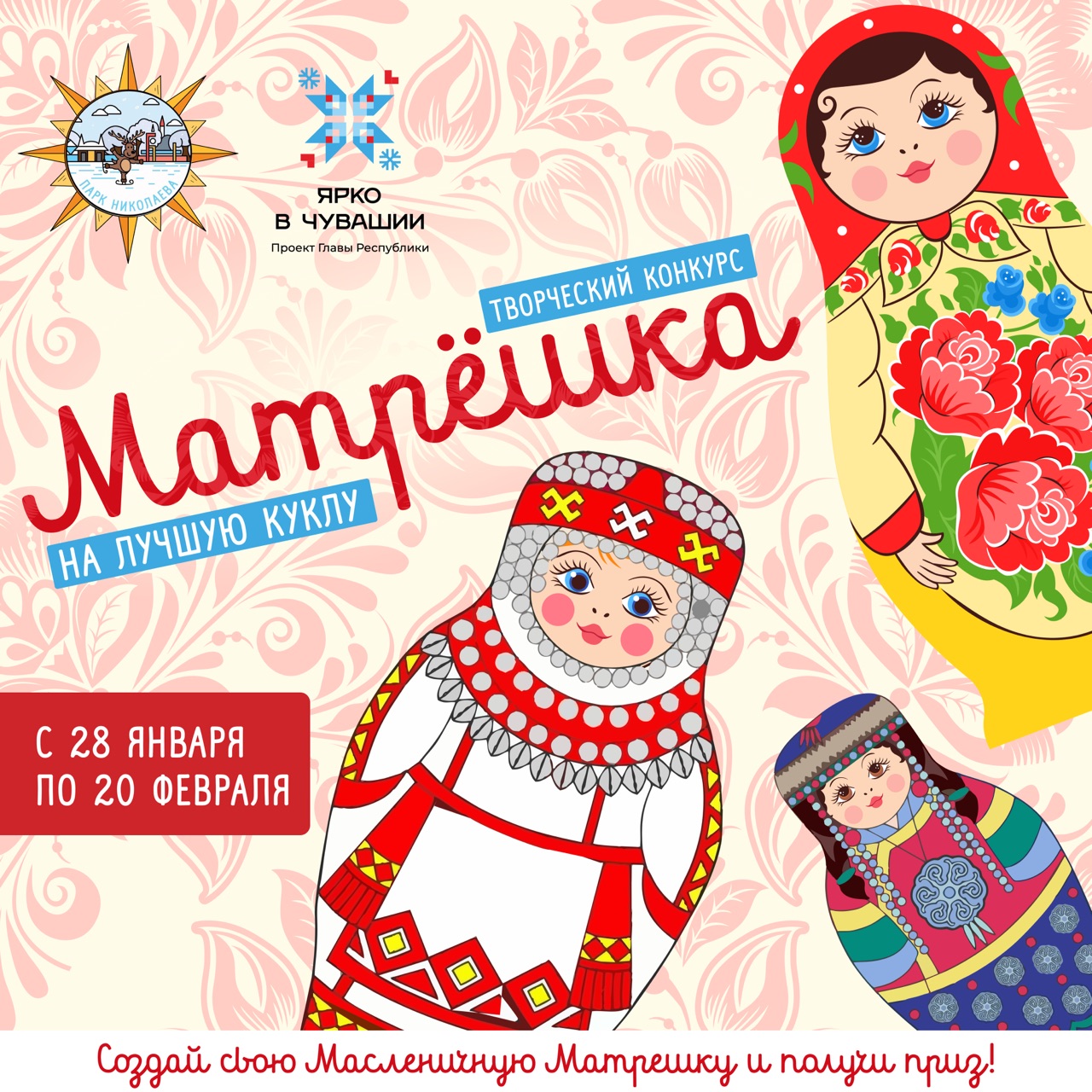 Дорогие друзья! Парк Николаева объявляет творческий конкурс на лучшую куклу «Матрешка» в рамках праздника «Краса-Масленица», который состоится 21 и 22 февраля!
