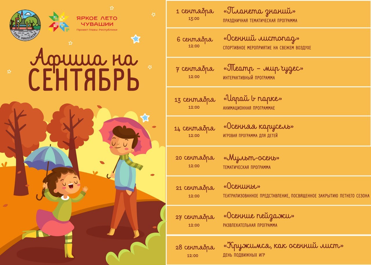 Наступила еще одна прекрасная пора - золотая осень🍁🌾🌲Она подготовила нам много интересных и ярких событий. Знакомьтесь с АФИШЕЙ мероприятий на сентябрь 2025 года в Парке Николаева.